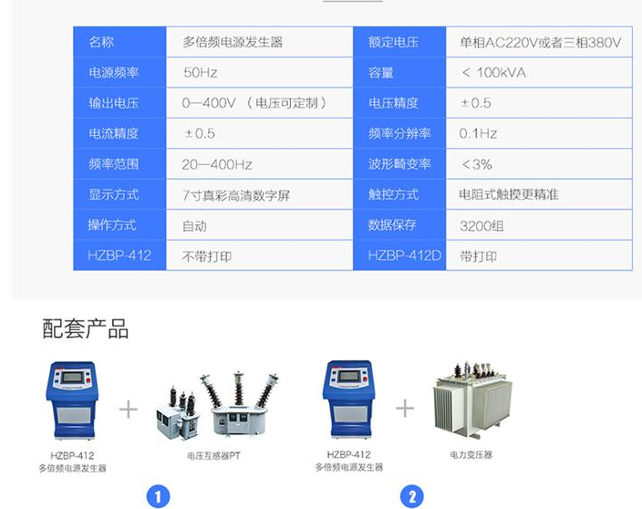 HZBP-412多倍頻電源發生器相關參數
