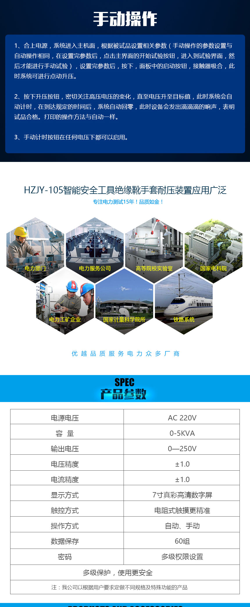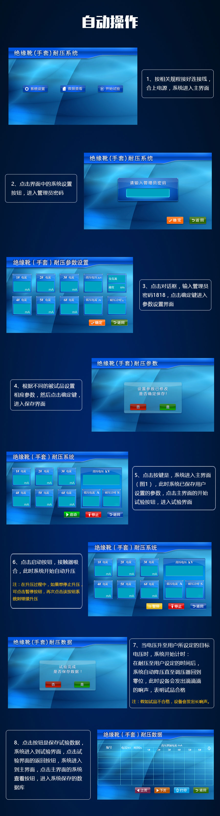 HZJY-105智能安全工具絕緣靴手套耐壓裝置,采用先進(jìn)的微電子處理技術(shù),全部使用過程可提前進(jìn)行設(shè)置,全中文界面,操作簡單明了。全部測試項(xiàng)目設(shè)定后自動進(jìn)行測試,無須人工干預(yù)。