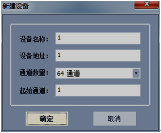 在“設(shè)備管理”區(qū)域內(nèi)點(diǎn)擊鼠標(biāo)右鍵,選中“添加設(shè)備”彈出如下圖2-3新建設(shè)備對(duì)話框,設(shè)備名稱可自命名,設(shè)備地址為下位機(jī)地址(可在下位機(jī)系統(tǒng)設(shè)置界面中查詢),根據(jù)需要選擇相應(yīng)的通道數(shù)目和起始通道(默認(rèn)起始通道為1)。當(dāng)通道數(shù)目大于64或者需要將通道分成不同的類,可以各類通道掛在不同的設(shè)備上。如前8個(gè)通道測(cè)量溫度,后8個(gè)通道測(cè)量濕度并且想把他們以不同的窗口顯示出來(lái),可以按一下操作進(jìn)行:1)建立一個(gè)新的8個(gè)通道的設(shè)備,設(shè)備名稱->設(shè)備地址為1 ->通道數(shù)量8通道->起始通道1;2)再建立一個(gè)8通道的設(shè)備,設(shè)備名稱->設(shè)備地址為1 ->通道數(shù)量8通道->起始通道9。以上是對(duì)于同一臺(tái)儀器不同通道的操作。
