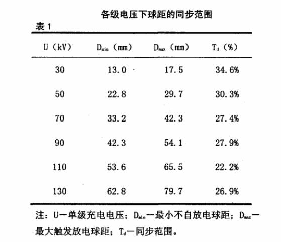 因此,為了得到符合標準規定的有效波形,必須對沖擊電壓發生器的有關參數進行設置,這往往給發生器的同步帶來了困難,即在正常的情況下,中間球隙往往不能連續擊穿,影響了電容的串聯放電通路,因此要可靠地實現各電容的串聯放電,得到符合標準的沖擊電壓波形,有必要對同步問題進行研究。