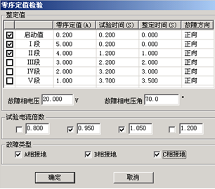 微機繼電保護測試儀做完阻抗定值校驗后,請退出距離保護壓板并投入零序保護壓板,否則容易造成兩種保護搶動的現象。選擇“零序電流定值校驗”測試項目后,單擊“添加”按鈕,彈出的對話框如上圖所示: