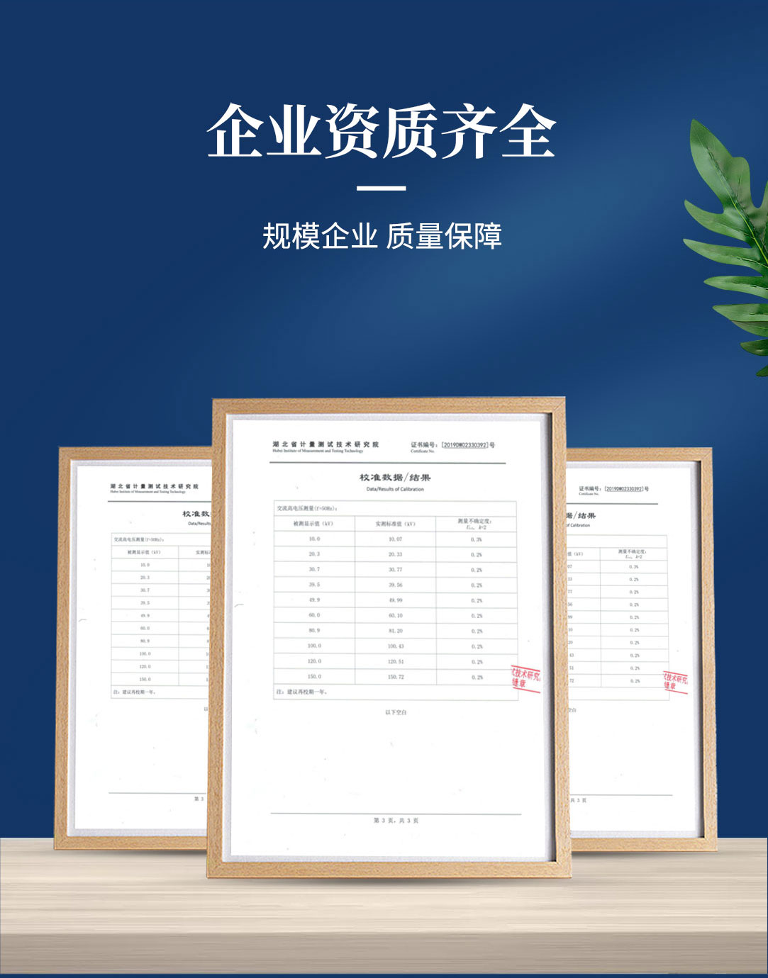 武漢市合眾電氣研發(fā)、生產的產品均嚴格按照國際、國家標準及行業(yè)規(guī)程生產制造,并通過國家、各省級、市級電力研究所、計量中心及電力權威部門的檢測。同時武漢市合眾電氣全面通過ISO9001國際質量管理體系認證、中華人民共和國制造計量器具許可證、GB/T19001-2008質量管理體系要求、GB/T24001-2004環(huán)境管理體系要求、GB/T28001-2011職業(yè)健康安全管理體系要求。