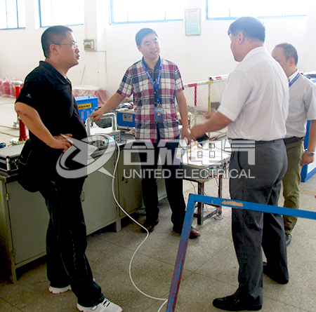 在公司領導和技術人員的陪同下,兩位客戶對合眾電氣的生產車間、質檢室和試驗區先后進行了考察。在質檢室,技術人員對公司產品的質量把關環節進行了詳細的講解。在試驗區,技術人員通過實際操作演示,對公司的產品進行了詳細介紹。最后公司領導還帶領兩位客戶在公司的樣品間對公司生產的其他產品做了簡單介紹。