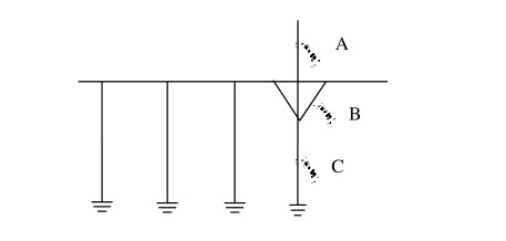 在 C 點(diǎn)測量時(shí),所測的是該支路下的接地電阻值。